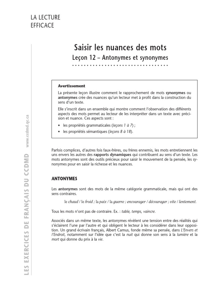 Se dit de mots ou d expressions qui ont une signification très voisine et à la limite le même sens.